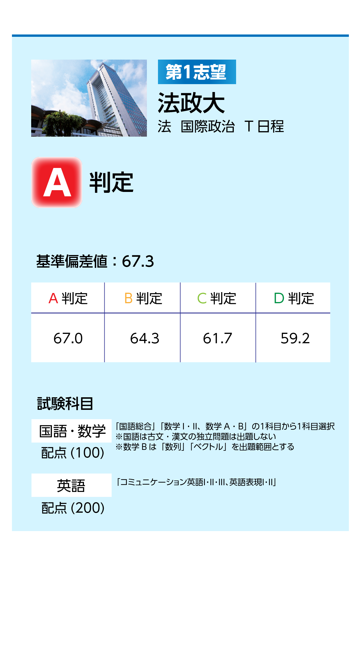 受験カードに記入した志望校(最大5校)の合格可能性判定を表示できます。